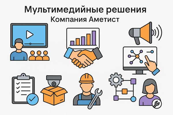 Компания «Аметист» реализует проекты в области мультимедийных решений для организаций любой направленности — от коммерческих предприятий и образовательных учреждений до музеев, концертных залов и спортивных арен. Каждый проект разрабатывается с учётом задач заказчика и особенностей объекта, что позволяет достигать высокой эффективности, надёжности и функциональности систем.